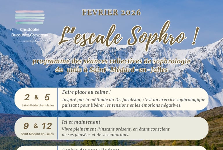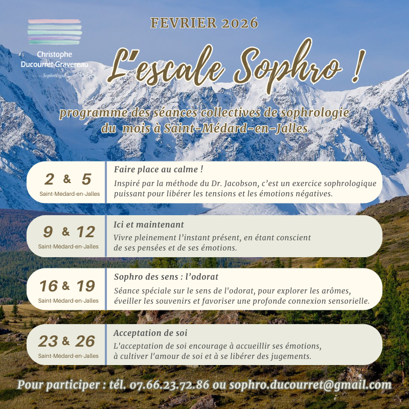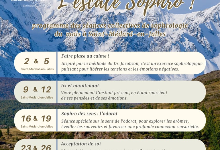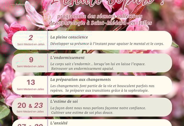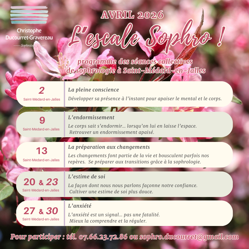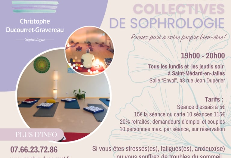 J'essaie de vous proposer un maximum de possibilités pour que vous puissiez trouver la pratique de sophrologie qui vous convient le mieux.