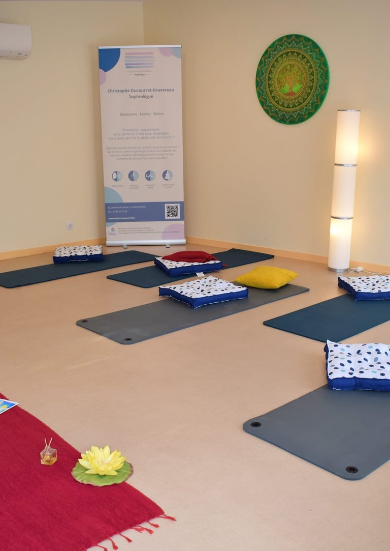 Les séances collectives hebdomadaires de sophrologie axées sur la détente, la relaxation et le lâcher-prise sont un temps guidé qui permet à chacun de relâcher les tensions physiques et mentales dans un cadre sécurisant et bienveillant. Porté par l’énergie du groupe, chaque participant évolue à son rythme, dans le respect, la tolérance et l’absence totale de jugement. Les séances proposent des thèmes variés et s’appuient sur des exercices de respiration, de conscience corporelle et des relaxations guidées favorisant l’apaisement, la présence à soi et l’harmonisation intérieure. C’est une expérience à la fois personnelle et collective, qui soutient durablement le bien-être global au quotidien.